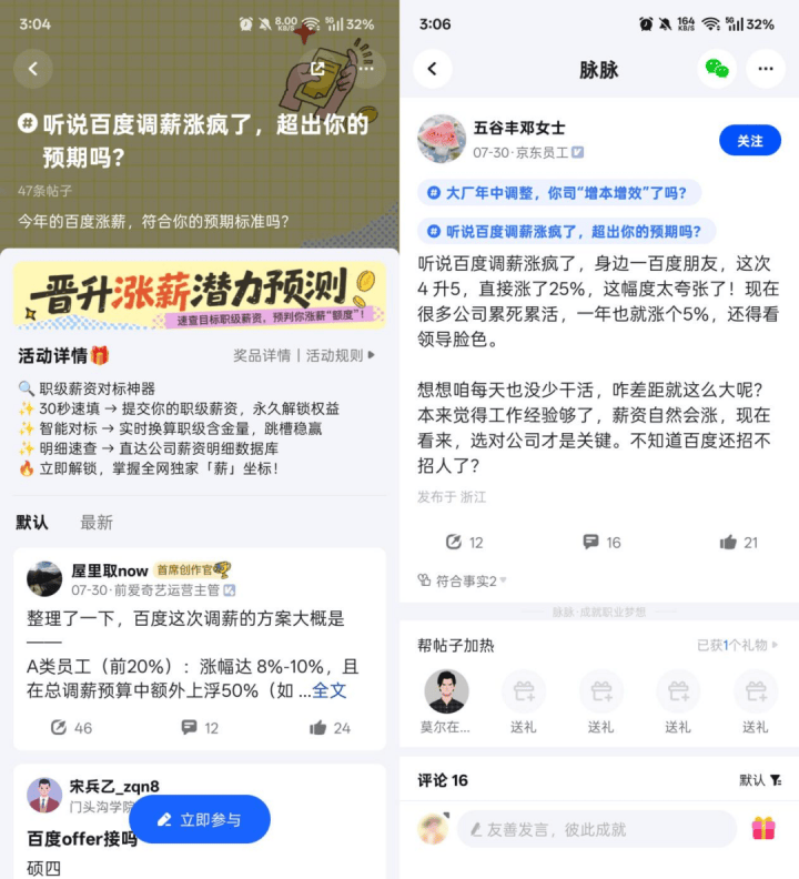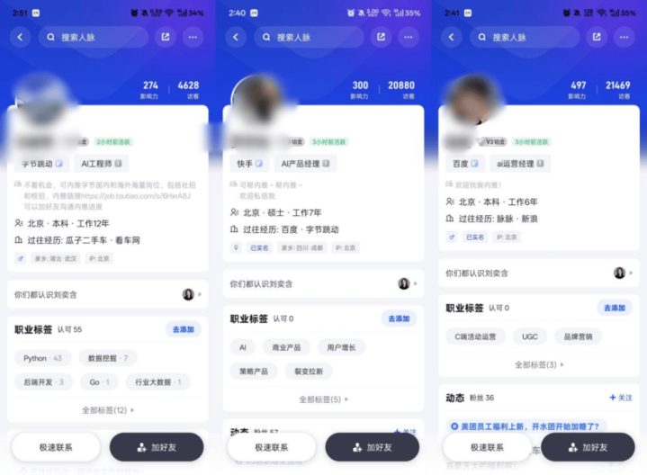 这种经常在线活跃的人才状态,可能也是为什么大厂高管如此重视脉脉,要亲自在脉脉下场捞人的主要原因。